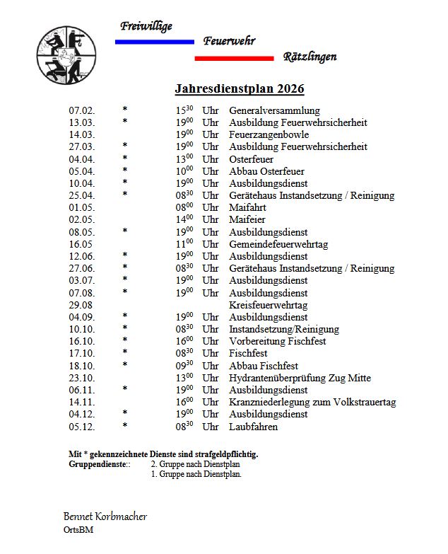 Dienstplan der 2.Gruppe